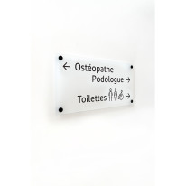 Les panneaux muraux directionnels peuvent se fixer sur un mur à l’accueil ou sur une porte. Optez pour une signalétique directionnelle cohérente et homogène est une stratégie d’organisation et d’orientation indispensable dans vos bâtiments.