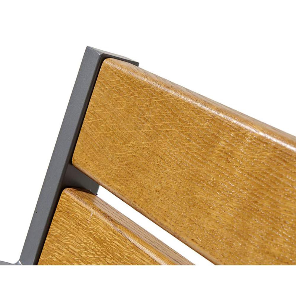 - Assise et dossier en chêne ou acajou certifié PEFC, épaisseur 36 mm, largeur 115 mm.