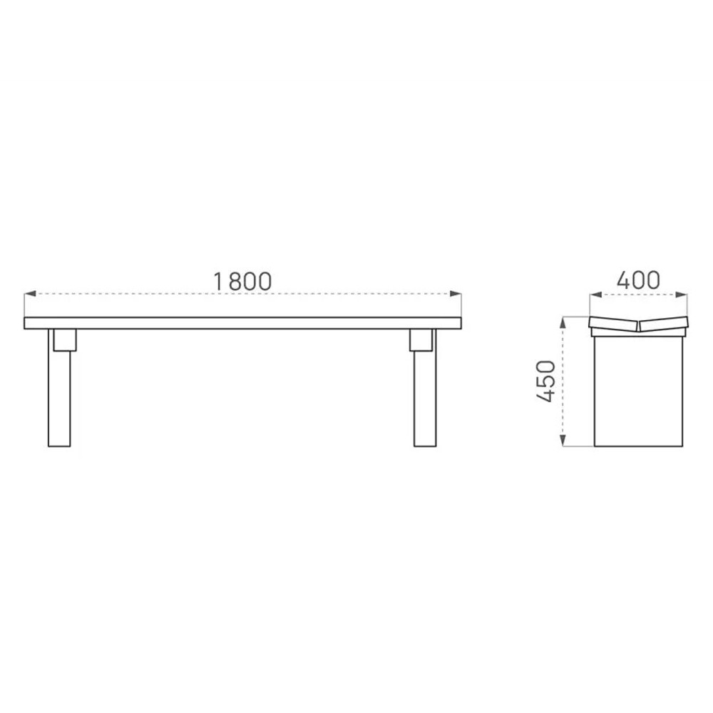 Banquette conçue pour une installation permanente en extérieur sur sol adapté.