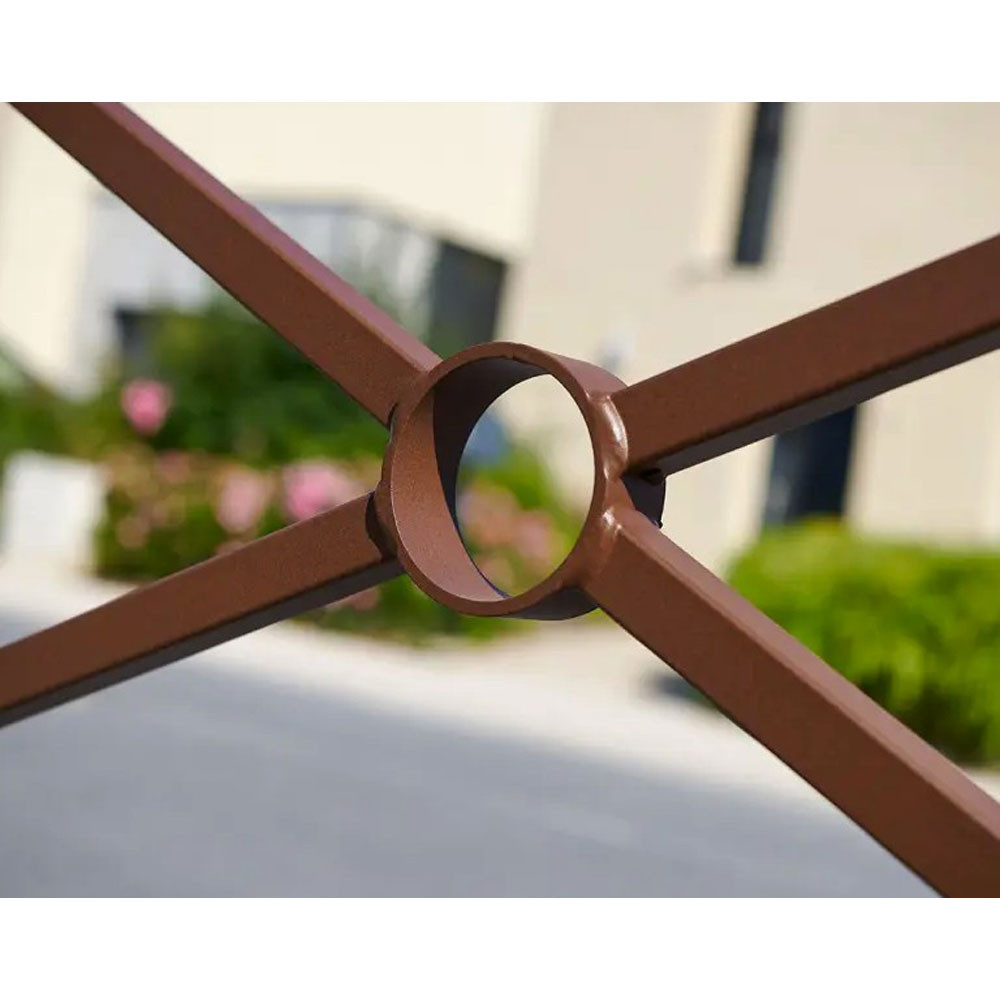 - Poteaux : Tubes acier Ø 76 mm avec bouchon bombé soudé