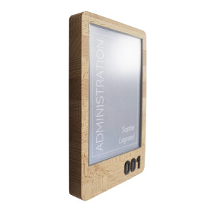Pour une touche esthétique supplémentaire, certaines versions de la gamme Frame sont également proposées avec relief personnalisable en noir ou blanc, renforçant la visibilité du message tout en conservant l’harmonie du bois naturel.
