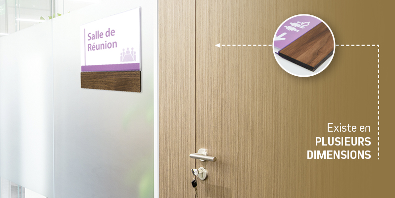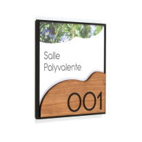 La gamme Wood incarne le retour des matières naturelles dans la signalétique intérieure. En associant le bois à des éléments en plexiglas ou en aluminium, ces plaques de portes apportent une dimension chaleureuse et qualitative, tout en conservant une excellente lisibilité. Déclinée en bambou caramel ou en bois de noyer, la gamme permet d’adapter l’ambiance selon le niveau de standing recherché.