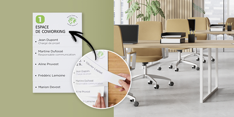 Disponible en formats A6, A5 ou A4, chaque plaque permet une insertion facile de documents, ce qui les rend particulièrement pratiques pour afficher un nom, une fonction, une direction ou toute autre information utile.
