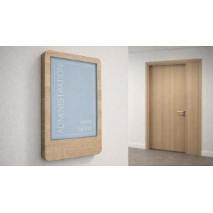 La gamme Frame propose des plaques de porte en bois de hêtre massif à la fois élégantes, robustes et adaptables à vos besoins de signalisation intérieure. Conçues avec une épaisseur de 19 mm, ces plaques se distinguent par leur aspect naturel et chaleureux, qui s’intègre facilement dans tout type d’environnement professionnel , qu’il s’agisse de bureaux, d’institutions ou de collectivités.