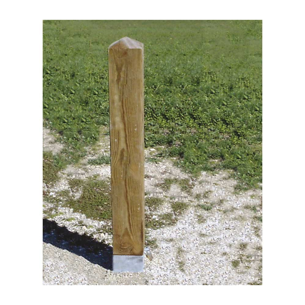 Borne escamotable en bois avec système escamotable et cadenas de verrouillage non fourni.