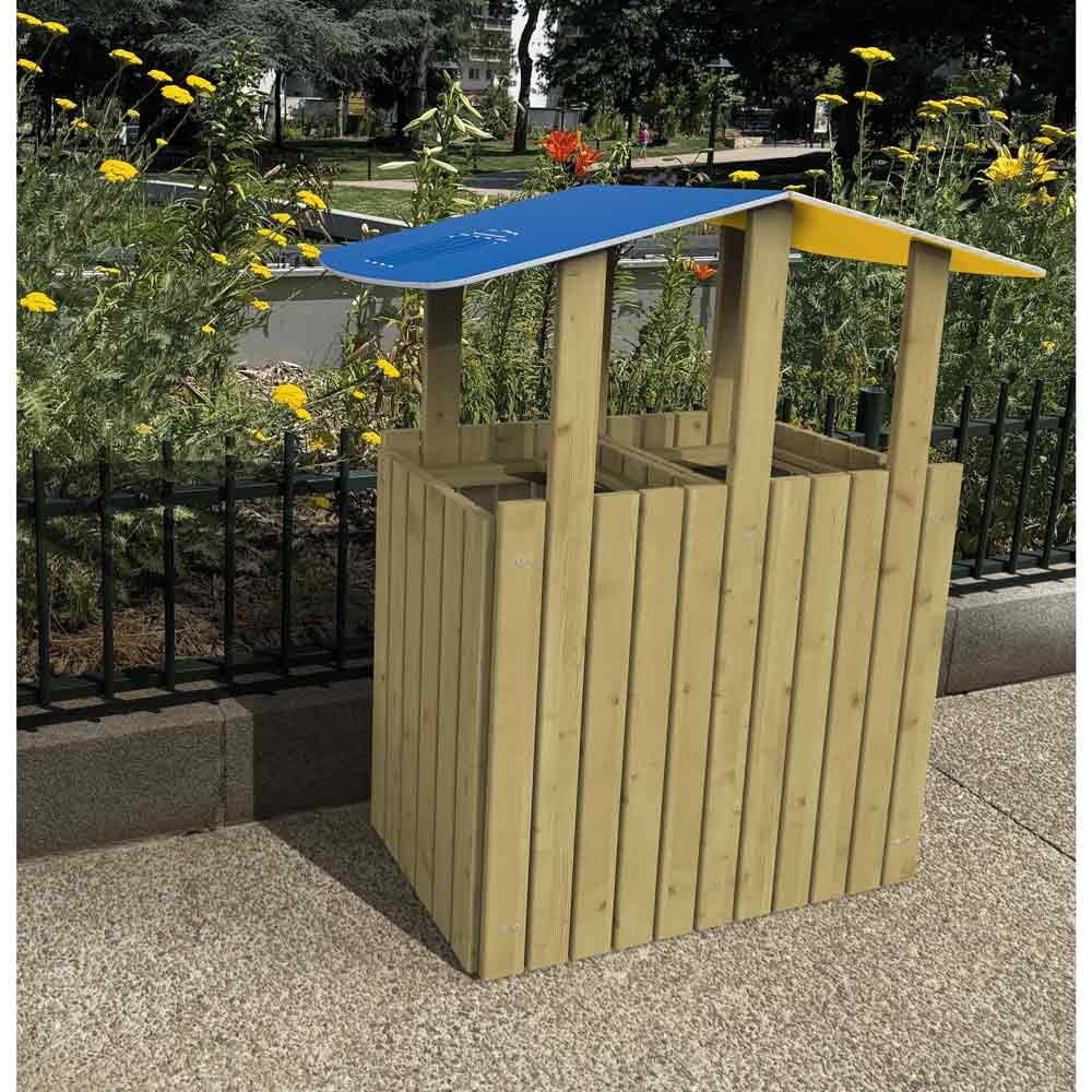 La corbeille en bois de tri sélectif avec toit est spécialement conçue pour