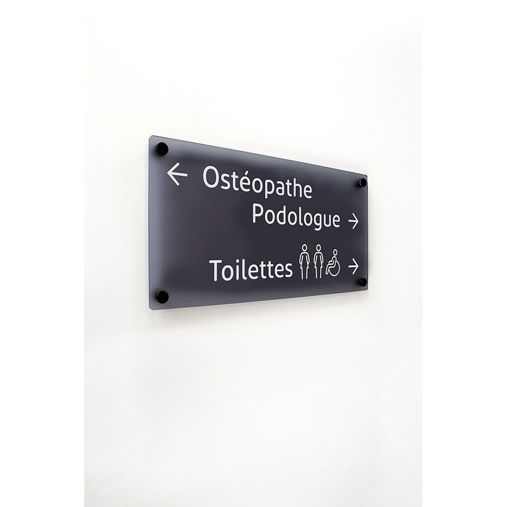Panneau directionnel mural personnalisable, idéal pour structurer la signalétique intérieure dans les entreprises, établissements scolaires ou collectivités.