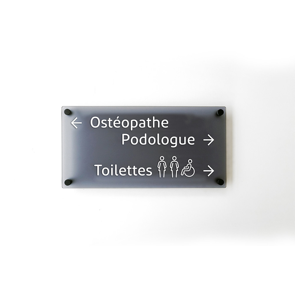 Le panneau directionnel blanc ou noir personnalisable de la gamme ICE est une solution élégante pour organiser vos espaces et orienter efficacement les visiteurs. Fabriqué en plexiglas givré de 4 mm, il offre un rendu haut de gamme et une excellente lisibilité.