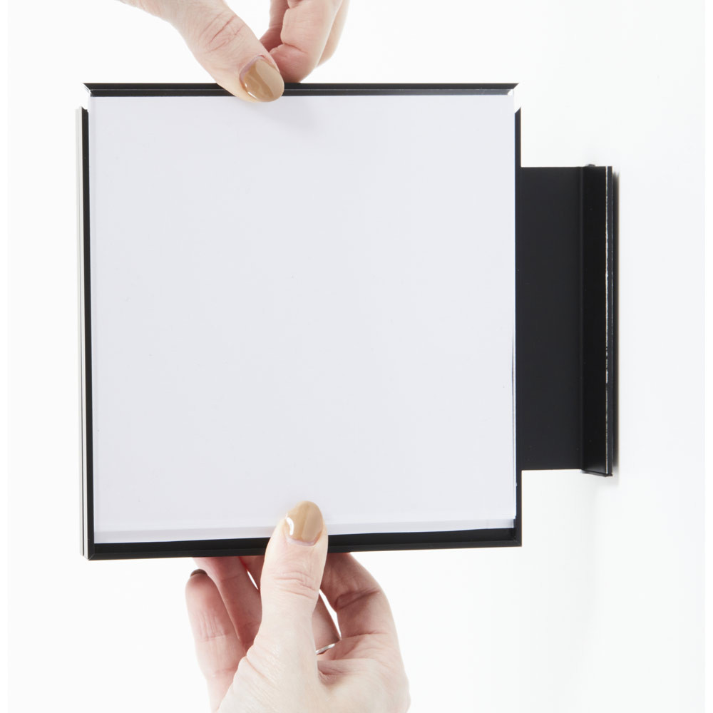 Grâce à son système modulable, cette plaque signalétique permet d’insérer facilement un document papier imprimé par vos soins. L’information est protégée par une feuille en acrylique antireflet, garantissant une excellente lisibilité tout en protégeant le visuel dans le temps.