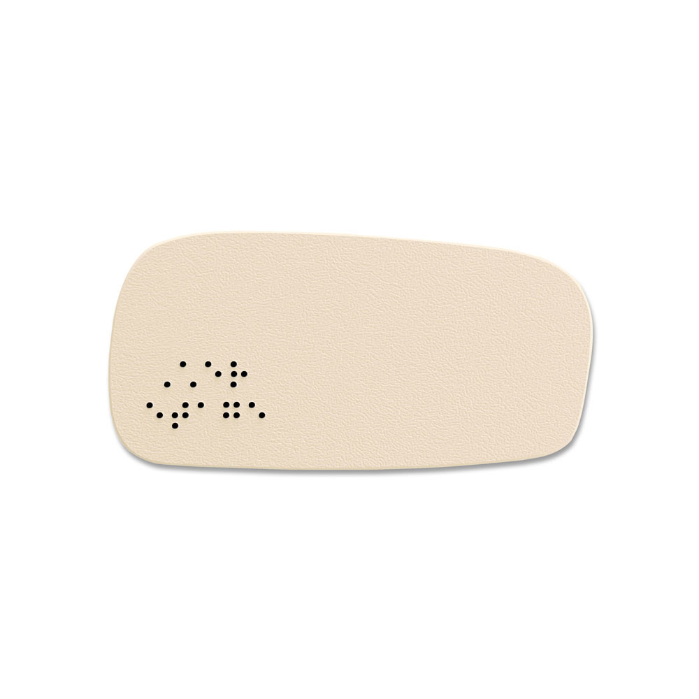 Cette plaquette avec billes de braille incrustée offrira un confort de mobilité aux personnes malvoyantes et leur permettra de repérer les salles et espaces. De plus la matière Touchy confère à ce produit des propriétés antibactériennes et bactériostatiques. En effet, des tests réalisés par plusieurs laboratoires démontrent que ce type de PVC présente d'une part une capacité élevée à freiner la prolifération des micro-organismes et d'autre part un haut niveau de décontamination lors du nettoyage.
