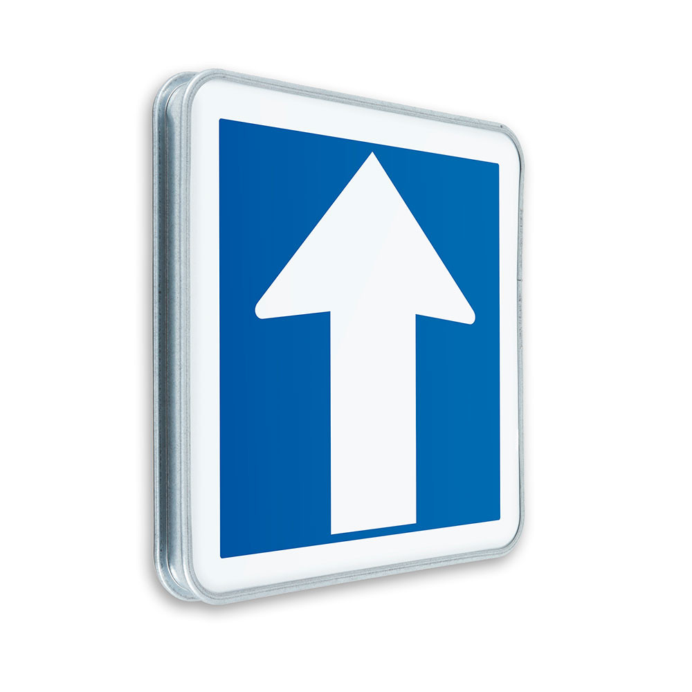 Ce panneau rectangulaire à fond bleu est facilement reconnaissable grâce à une flèche blanche orientée vers la droite ou vers la gauche, selon le sens de la circulation. Le panneau C12 contribue à la sécurité routière en évitant les erreurs de conduite. Il est proposé en différents formats et classes de visibilité, selon l’environnement urbain et les conditions d’éclairage.