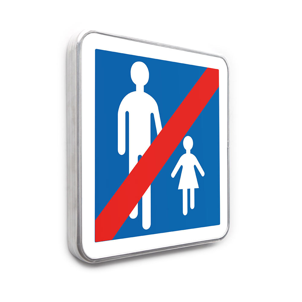 - Fonction : indique la sortie d’une zone piétonne.