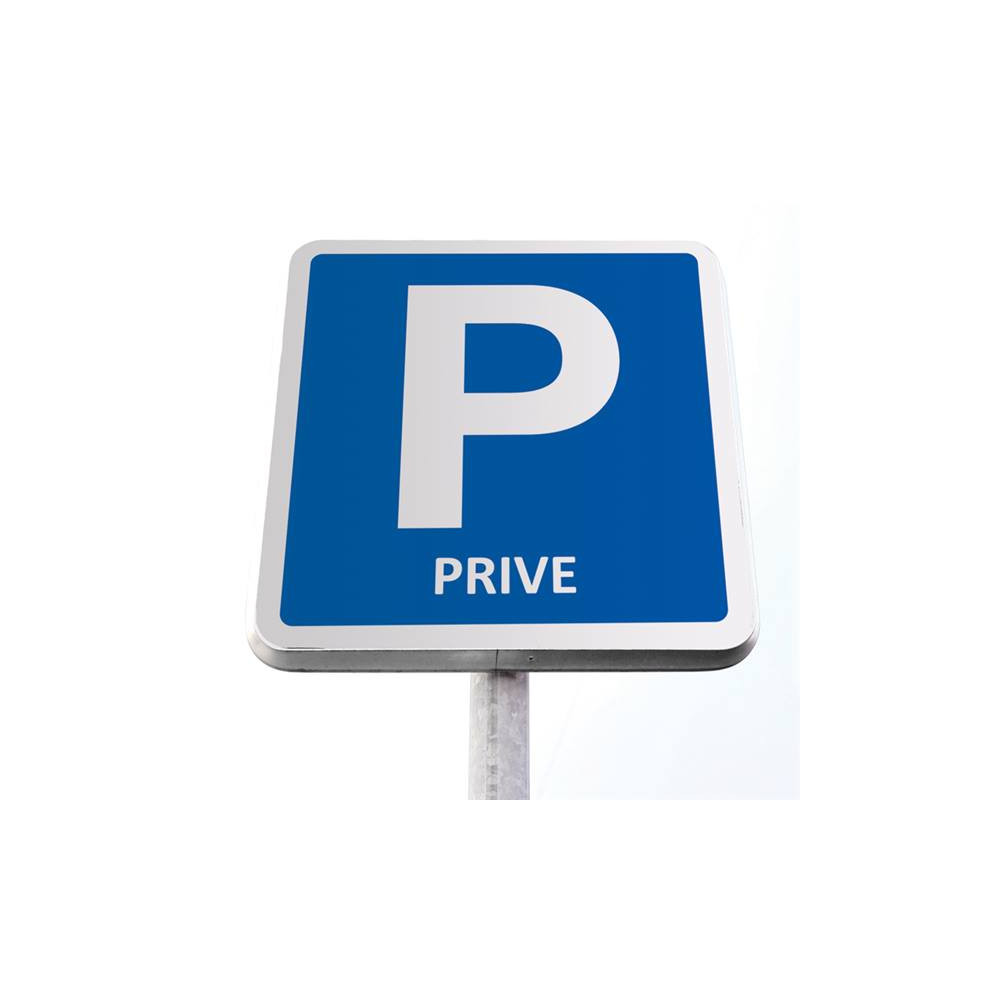 Panneau de parking privé de type police en aluminium. Disponible en 350 x 350, 500 x 500 ou 700 x 700 mm. Les bords sont retournés et sertis d'un rail de fixation. Vendu seul à fixer sur poteau ou au mur ou en kit avec poteau et fixation.
