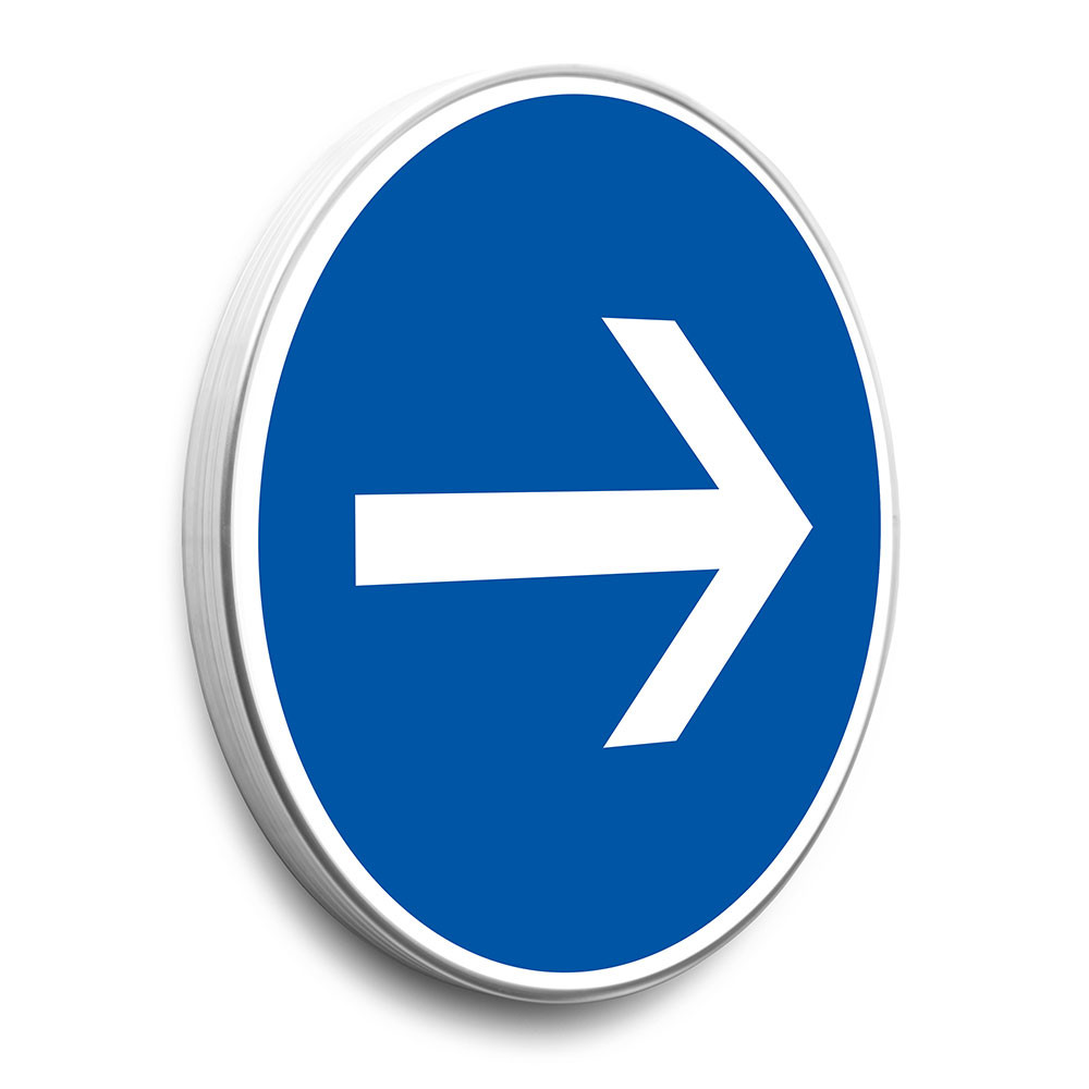 - Type : panneau routier de police B21-1 (direction obligatoire vers la droite)