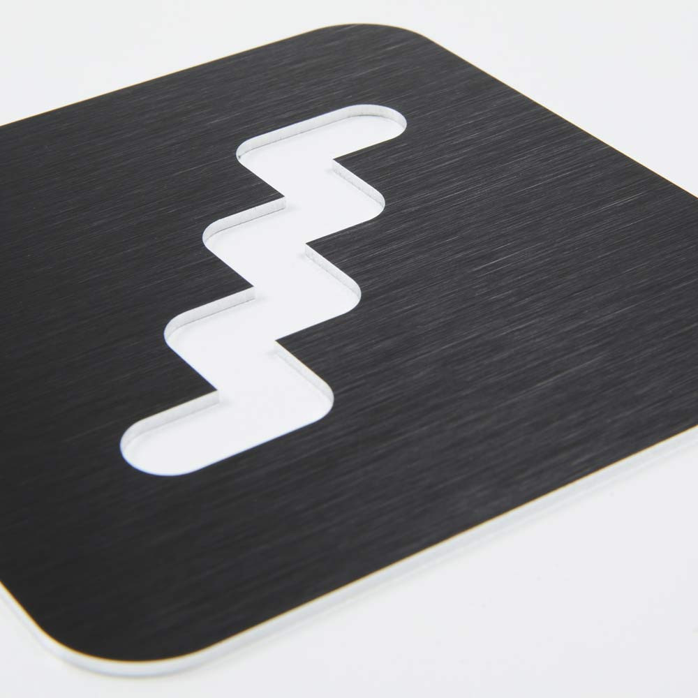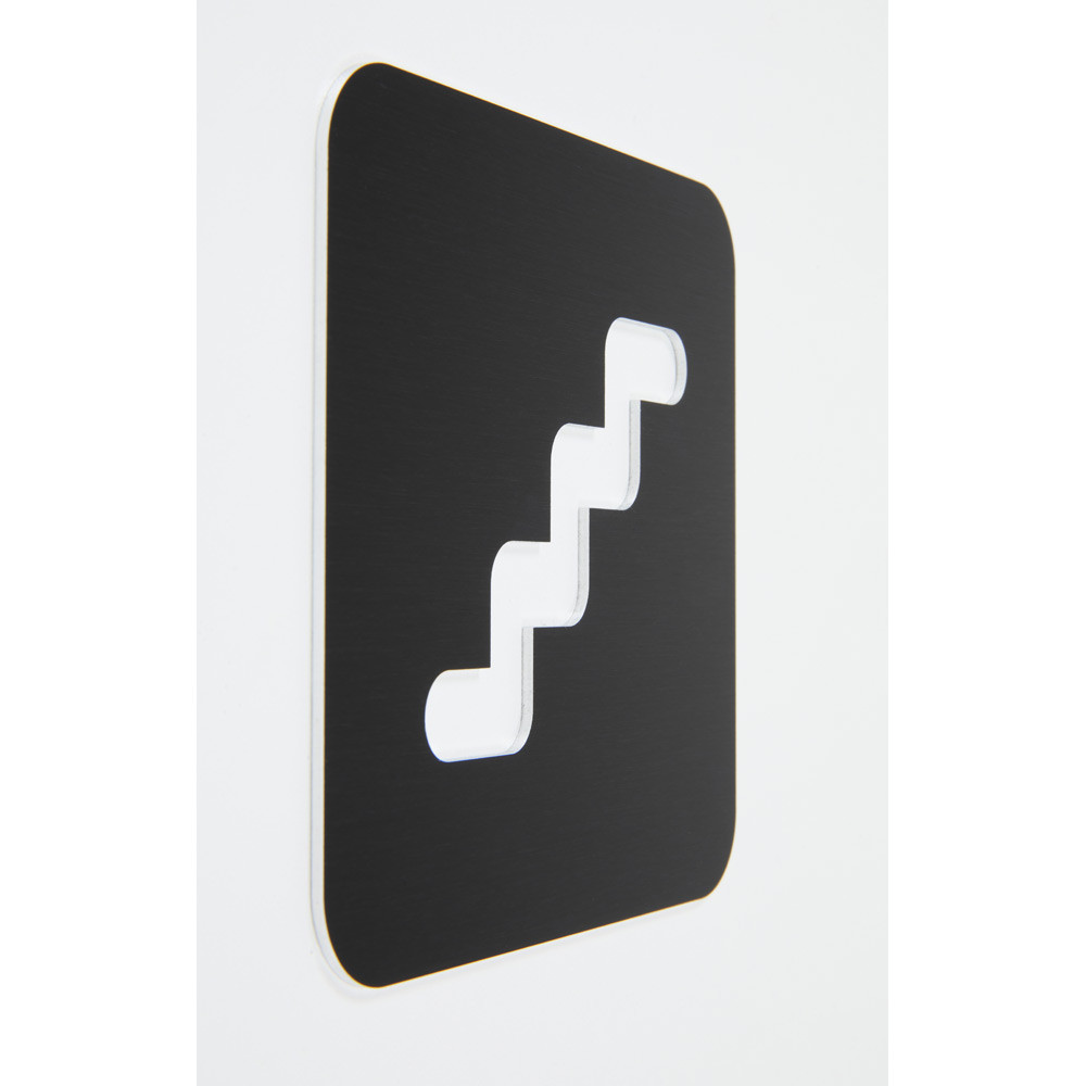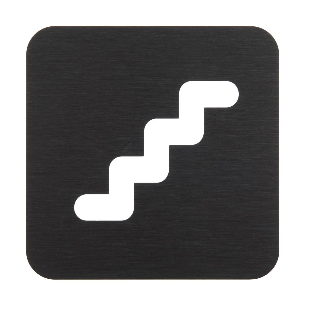 Pictogramme Escalier découpé en aluminium brossé noir – 100 × 100 mm