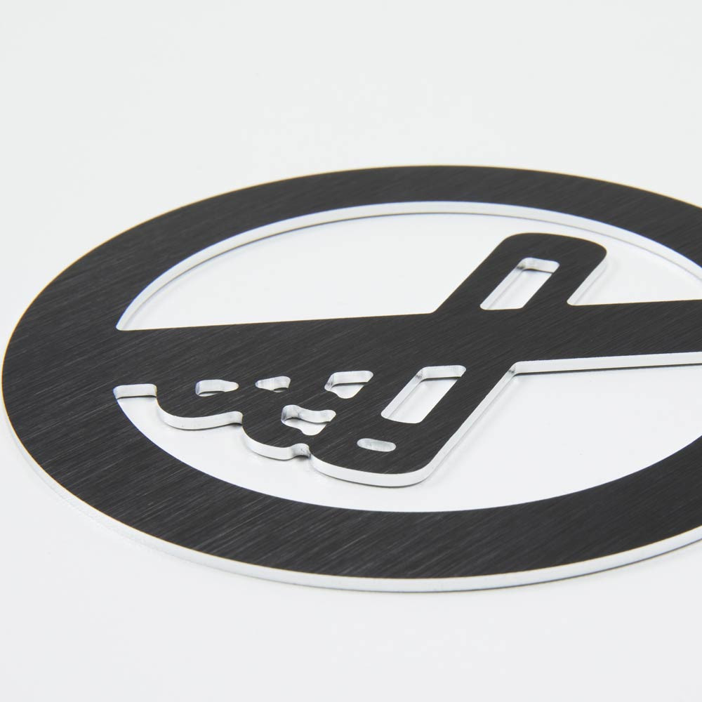 Réalisé en aluminium brossé noir d’une épaisseur de 1,5 mm, ce pictogramme