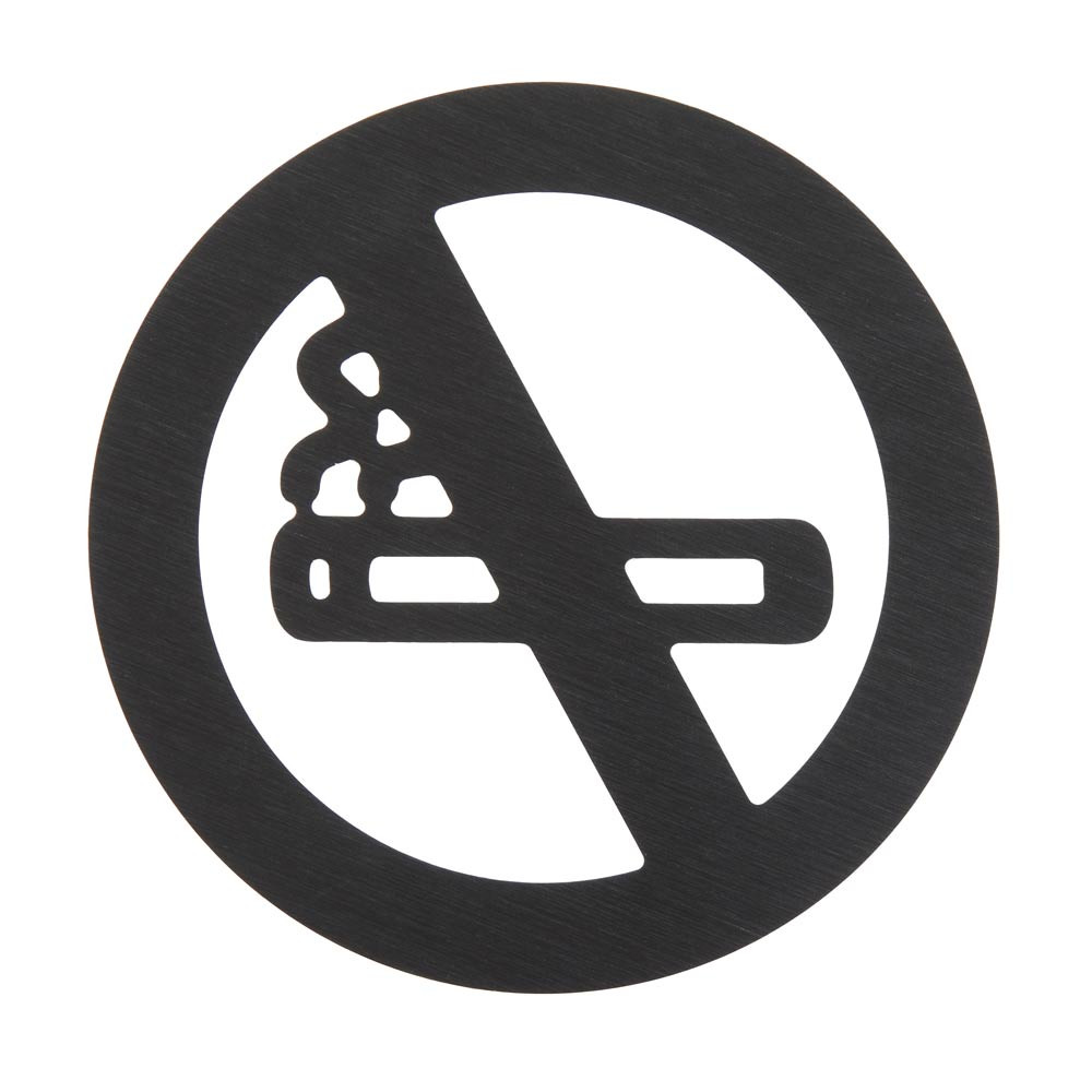 Pictogramme Interdiction de fumer découpé en aluminium brossé noir – Ø 100 mm