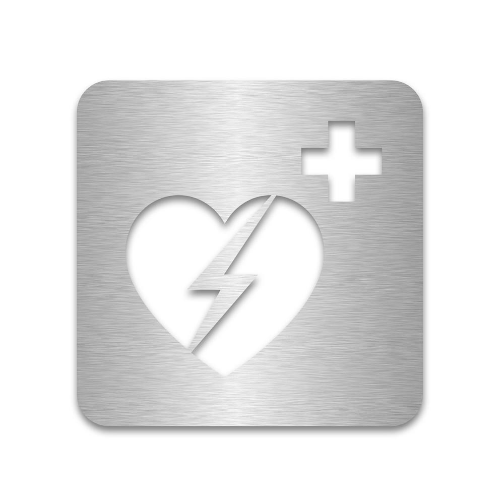 Plaque de porte aluminium brossé évidée – Défibrillateur automatique externe