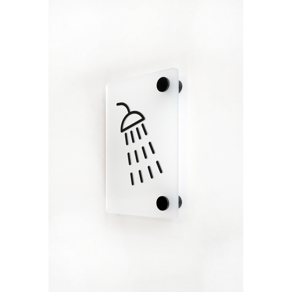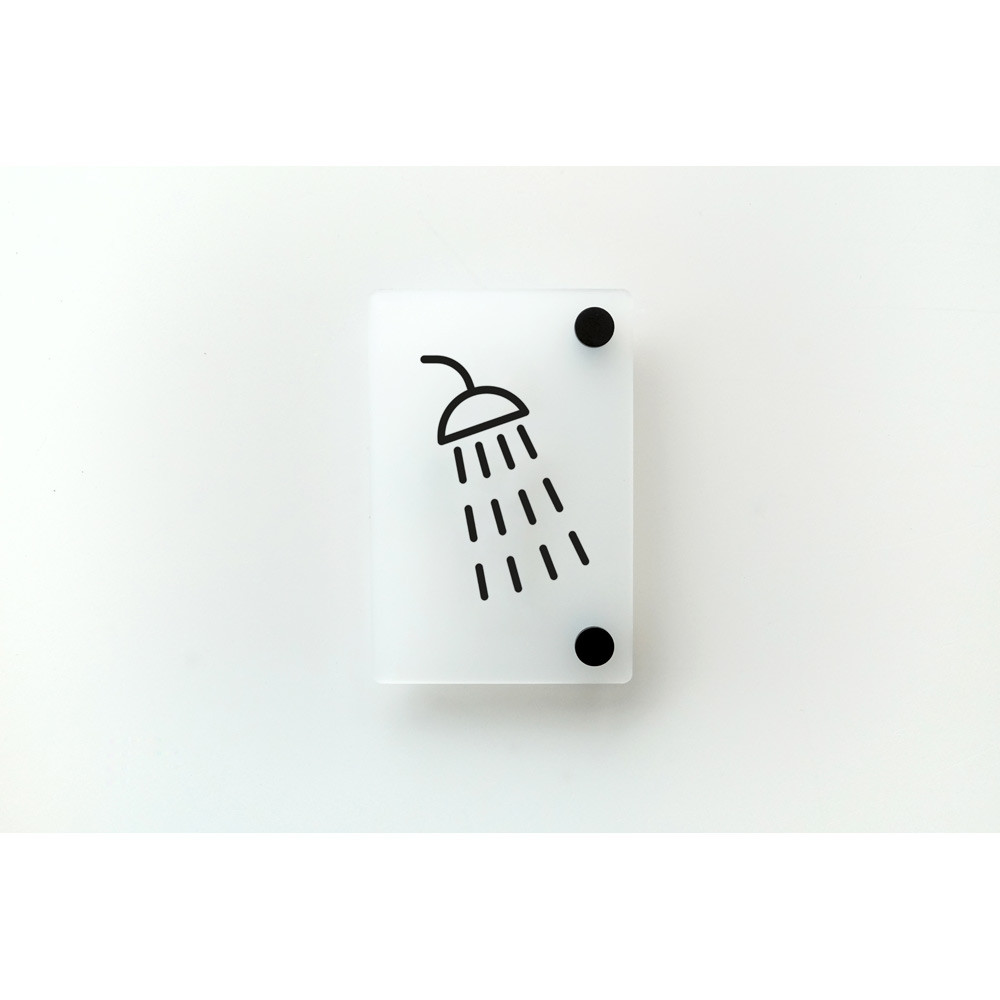 - Plaque de porte "Douche" en plexiglas givré blanc ou noir, signalétique pratique et lisible.