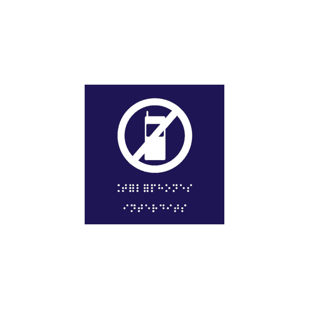 Plaque de porte symbole téléphone interdit en relief et avec écriture braille en option pour une meilleure orientation des personnes malvoyantes ou non voyantes. Idéal pour la mise au norme accessibilité. Dimensions 120 x 120 mm. Vendue avec fixation.