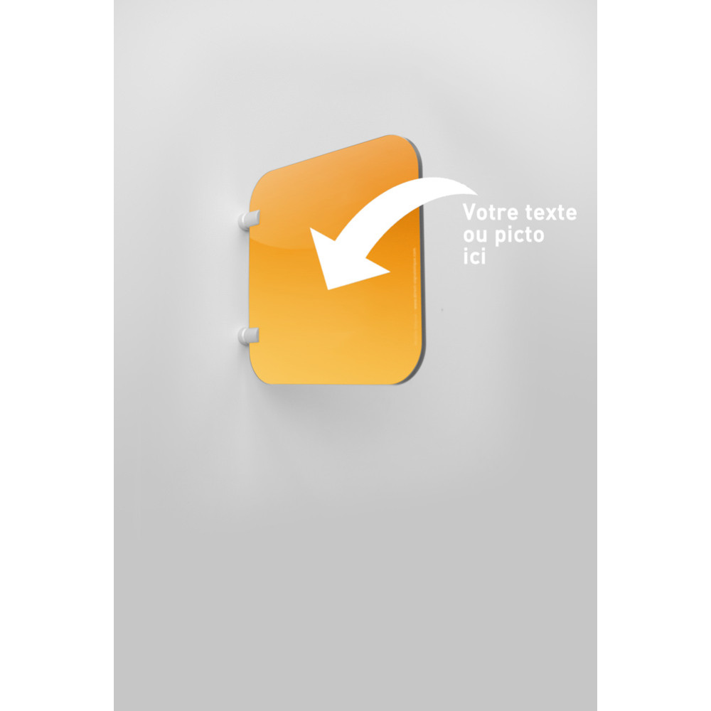 Complétez votre signalétique murale Icone® avec des plaques en drapeau personnalisée là où les indications doivent être visibles recto/verso. Grâce au drapeau de la gamme Icone®, vous pouvez signaler tous vos locaux perpendiculairement au mur de façon à ce que les visiteurs puissent les identifier dans les deux sens de circulation.