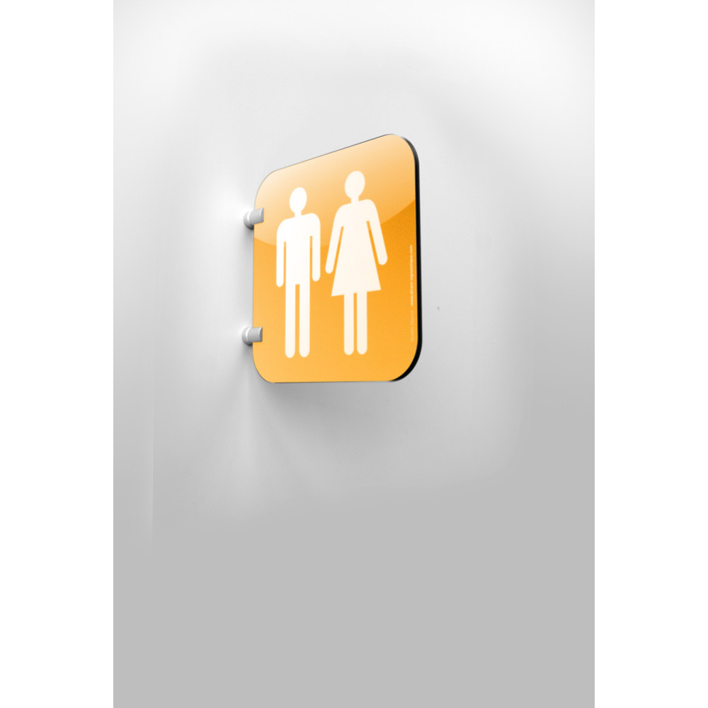 Complétez votre signalétique murale Icone® avec des plaques en drapeau là où les indications doivent être visibles recto/verso. Grâce au drapeau de la gamme Icone®, vous pouvez signaler vos toilettes mixtes perpendiculairement au mur de façon à ce que les visiteurs puissent les identifier dans les deux sens de circulations.