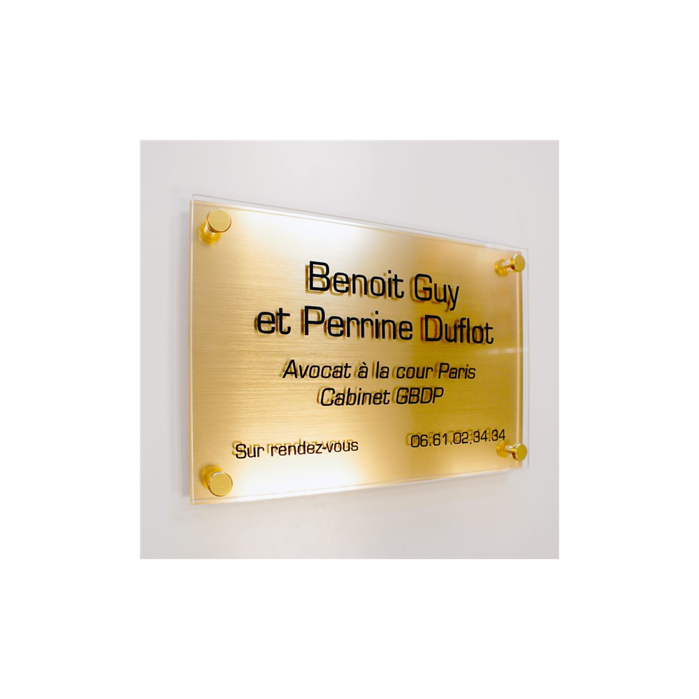 Plaque professionnelle en plexi sur support effet or brossé Pour KIT 12738