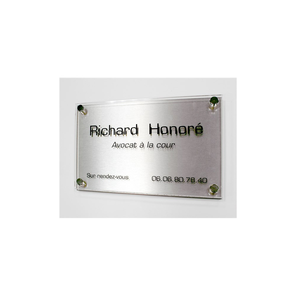 Plaque professionnelle en plexi sur support en alu brossé avec fixations argent POUR KIT 12729