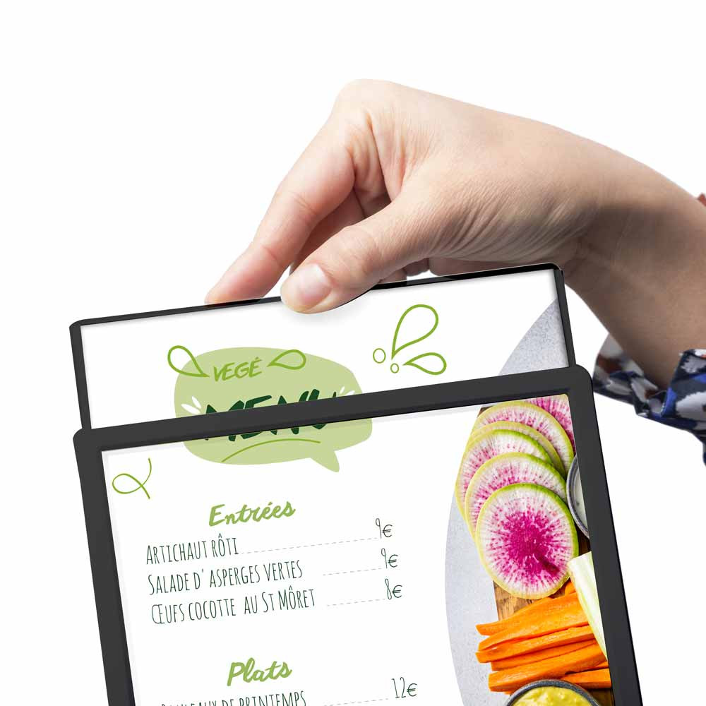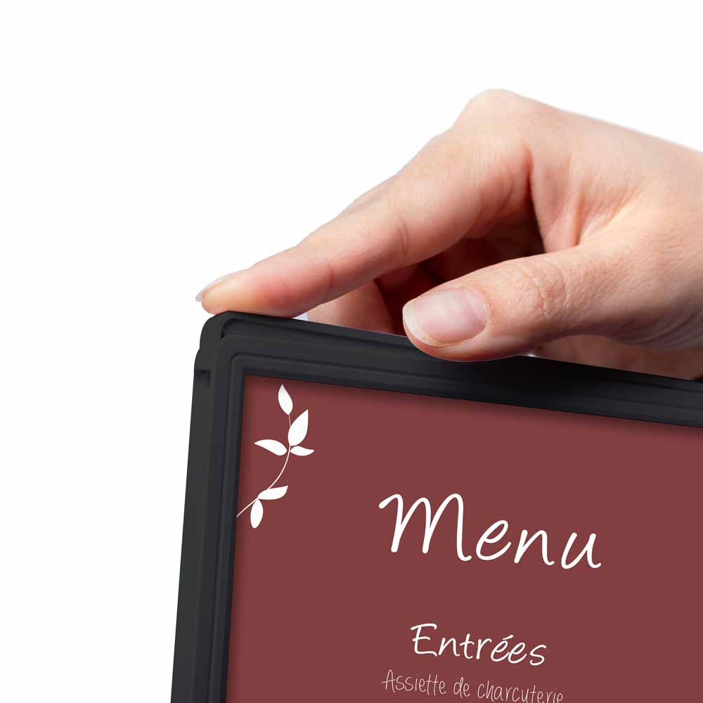 Le changement d'affiche est rapide et intuitif : ouvrez le dessus du cadre, glissez votre visuel et refermez !