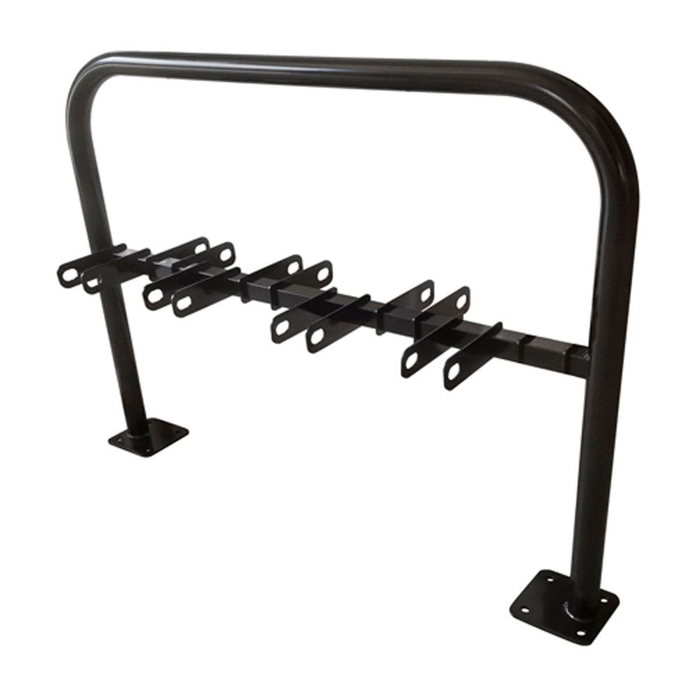 Support pour trottinettes en acier, idéal pour aménager vos espaces de stationnement. Elément indispensable au sein d'une collectivité ou d'une co-propriété. Les 7 trottinettes peuvent être disposer de chaque côté du rack.