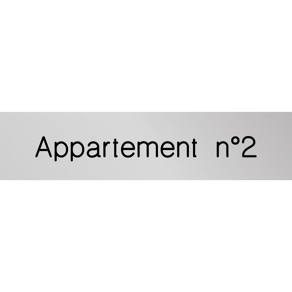 Découvrez la signalétique en métal gravé avec texte « Appartement n°2 ». Élégante et résistante, cette plaque est idéale pour une identification claire et durable des appartements. La gamme Métal existe également en version PVC couleur, offrant des alternatives adaptées à chaque besoin.