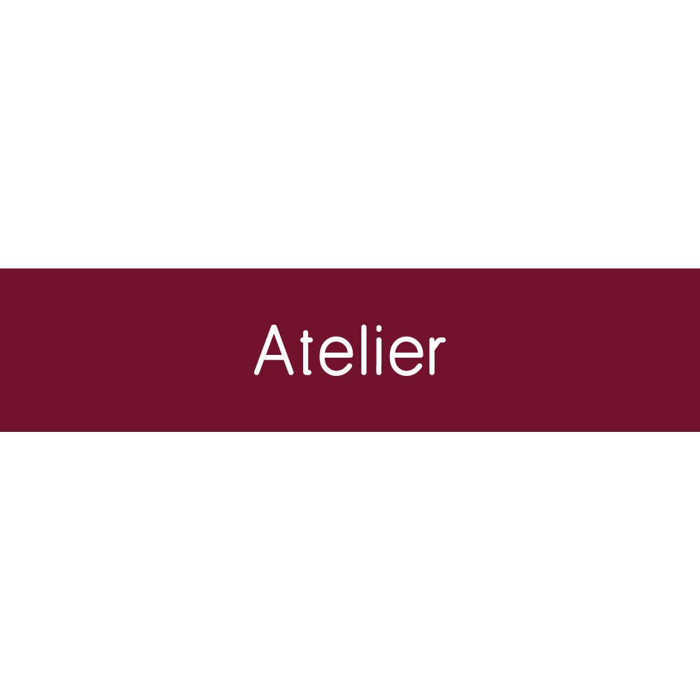 Découvrez la signalétique en PVC gravé gamme Couleur avec texte « Atelier ». Elle se décline en 10 coloris tendances avec écriture blanche ou noire contrastée, afin de répondre à la norme accessibilité. La gamme Couleur existe à l'identique en gamme Métal, avec les coloris argenté et doré.