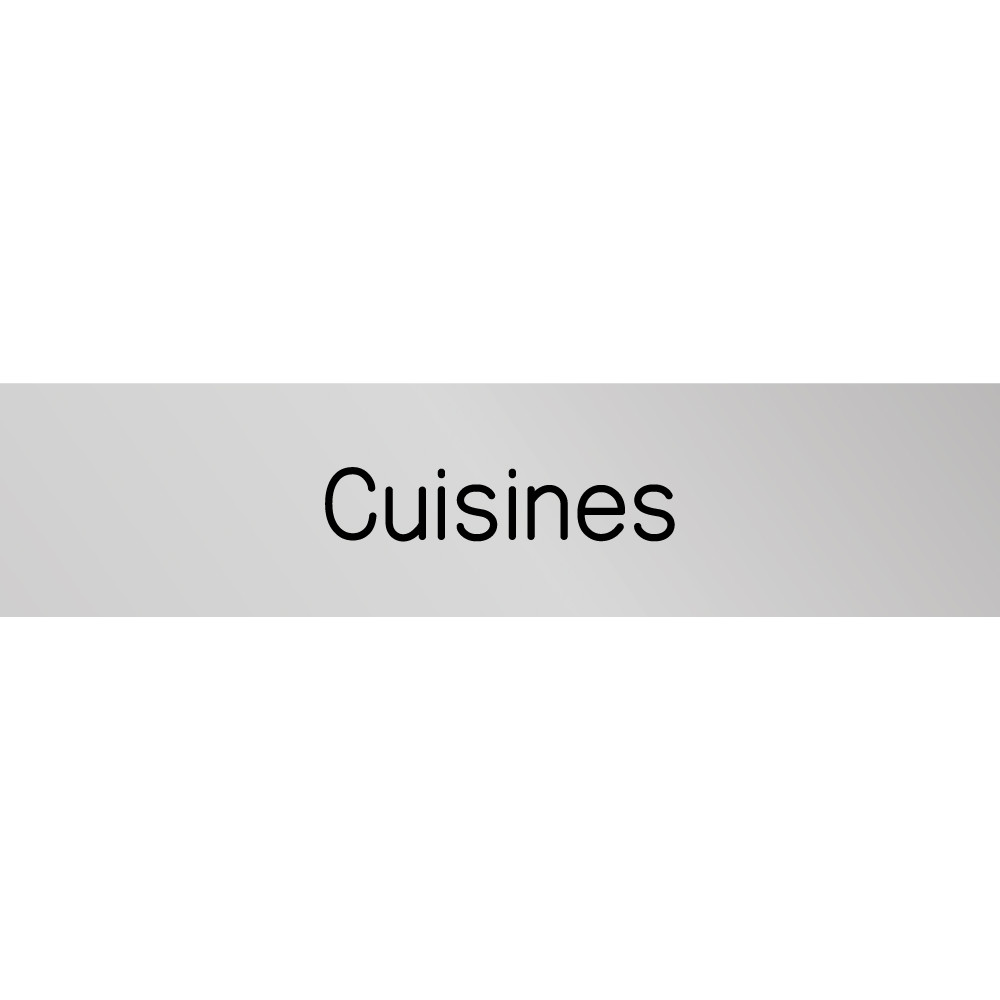 Découvrez notre signalétique gravée gamme Métal avec l'inscription "Cuisines". Disponible en finitions **argenté** et **doré**, elle apporte une touche élégante et professionnelle à vos espaces. Idéale pour les restaurants, cantines, cuisines collectives ou établissements recevant du public, cette plaque gravée assure une identification claire et durable.