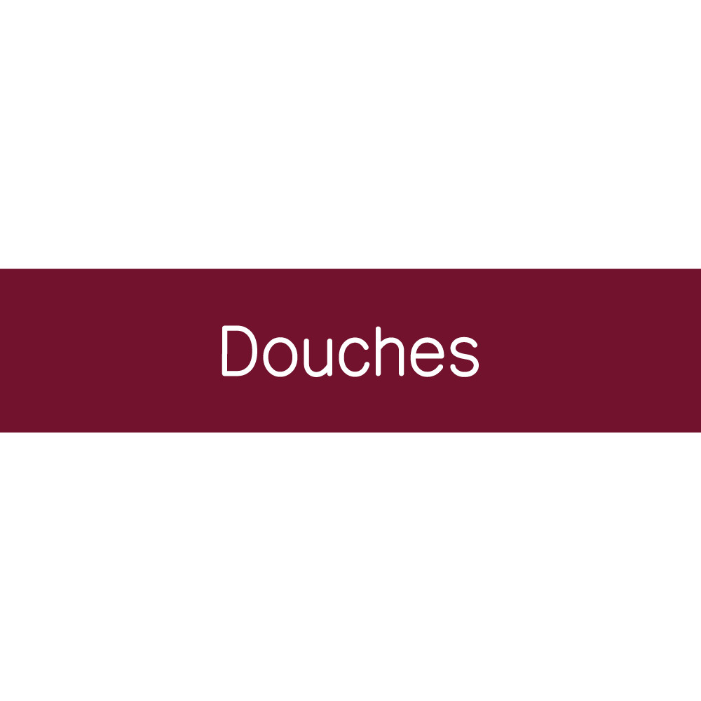 Découvrez notre signalétique en PVC gravé gamme Couleur avec texte « Douches ». Cette plaque élégante est disponible en 10 coloris tendances avec écriture blanche ou noire contrastée, garantissant une lisibilité optimale conforme aux normes d’accessibilité.