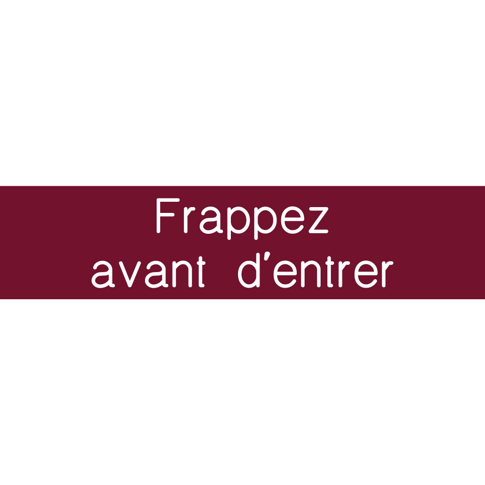 Retrouvez la signalétique en PVC gravé gamme Couleur avec texte « Frappez avant d'entrer ». Nous la proposons en 10 coloris avec écriture blanche ou noire contrastée, afin de répondre à la norme accessibilité. Découvrez également tous nos plaques PVC gravée couleur.