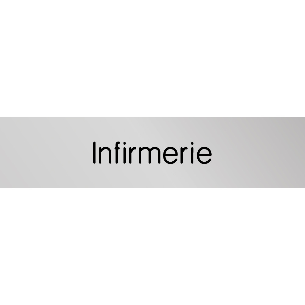 Découvrez notre plaque de porte en métal gravé avec le texte « Infirmerie ». Son design raffiné en finition argenté ou doré garantit une parfaite intégration dans tous les établissements professionnels et médicaux. Grâce à son contraste optimal et à son traitement anti-reflet, cette signalétique respecte les normes d’accessibilité. La gamme Métal est également disponible pour d'autres types de signalisation.