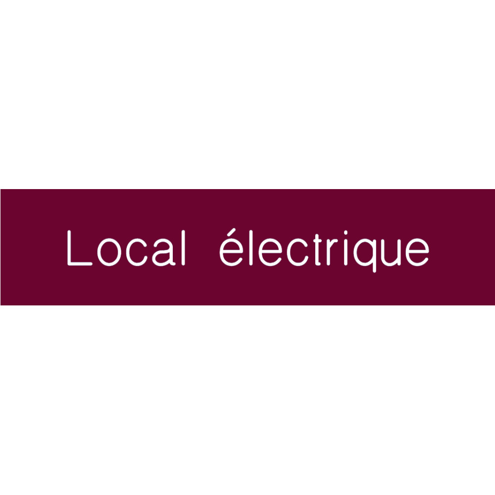 Découvrez la signalétique en PVC gravé gamme Couleur avec texte « Local électrique ». Elle se décline en 10 coloris avec écriture blanche ou noire contrastée, afin de répondre à la norme accessibilité. La gamme Couleur existe à l'identique en gamme Métal, en argenté et doré.