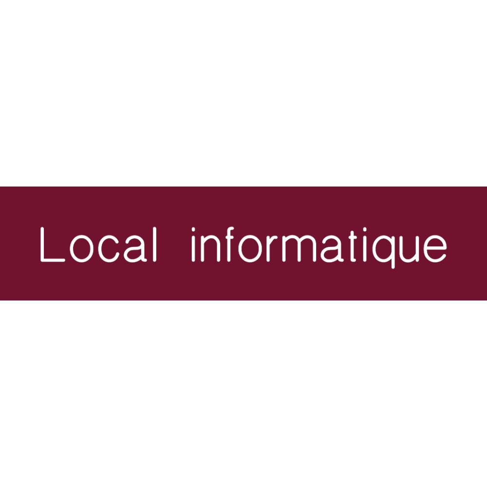 Découvrez la signalétique en PVC gravé gamme Couleur avec texte « Local Informatique ». Elle se décline en 10 coloris avec écriture blanche ou noire contrastée, afin de répondre à la norme accessibilité.