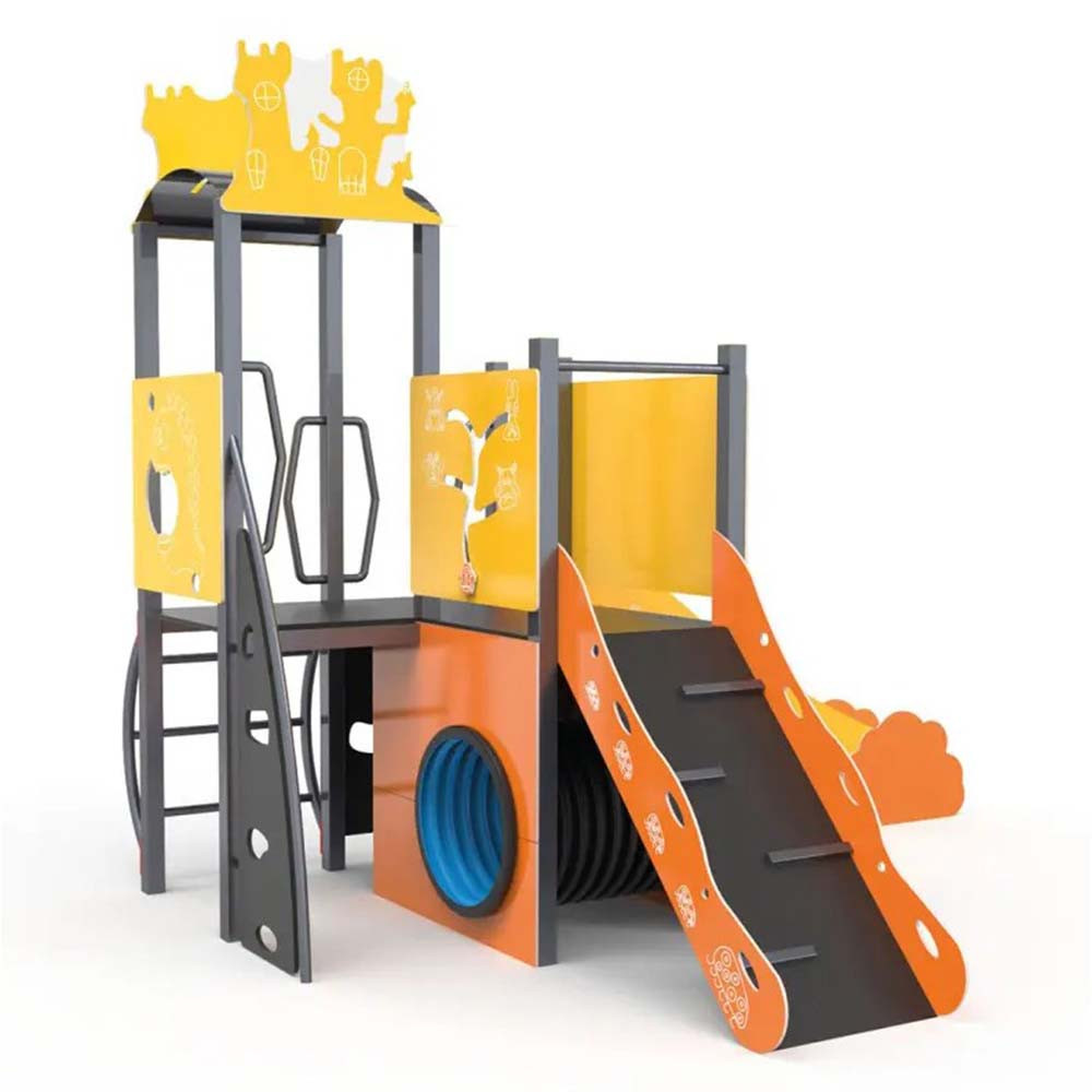 Elle se compose d’une tour, d’un toboggan, d’un tunnel, d’un module de grimpe, d’une échelle et de deux murs d’escalade.