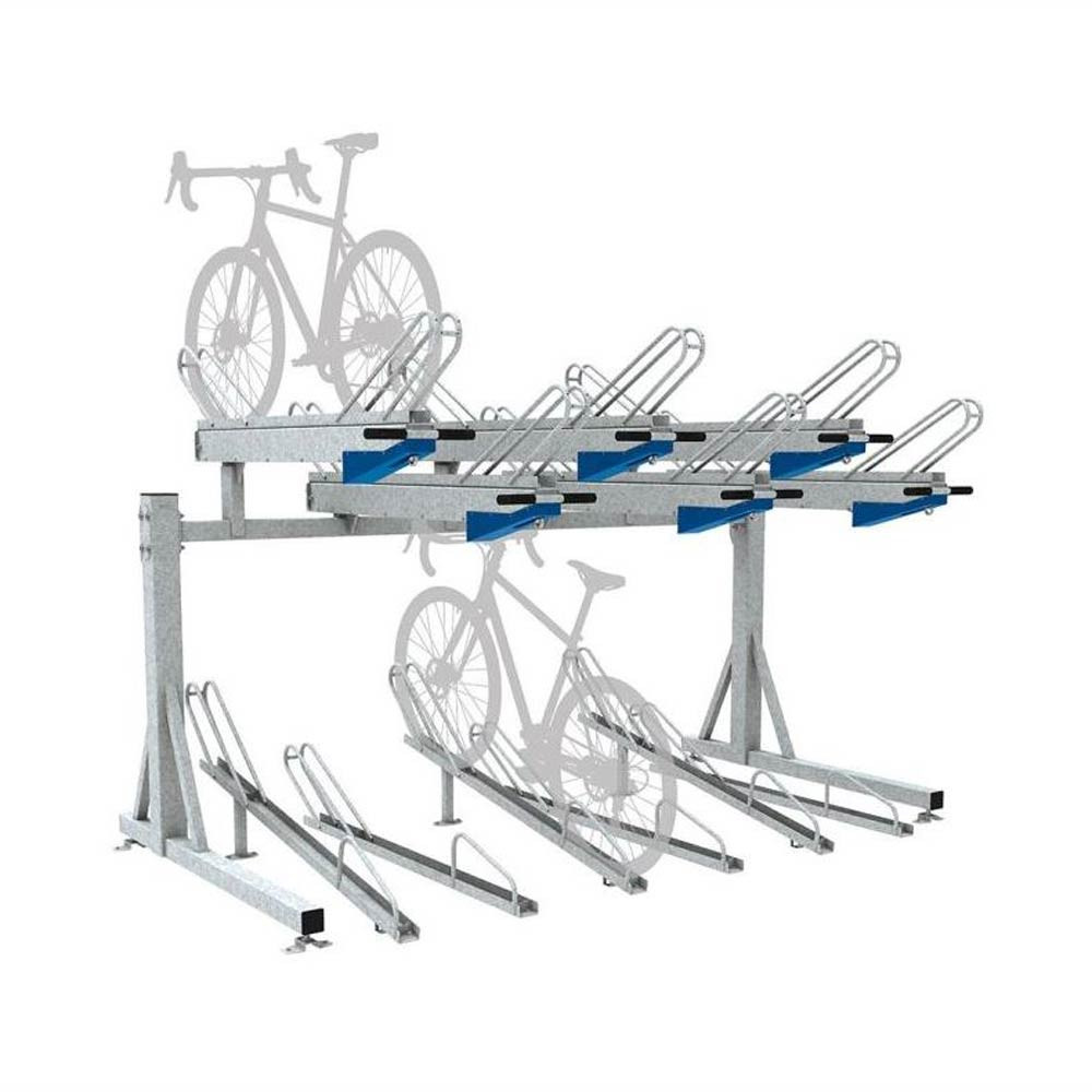 Ce support vélos à deux niveaux permet d’optimiser l’espace en offrant une capacité de stationnement doublée sur une surface réduite.
